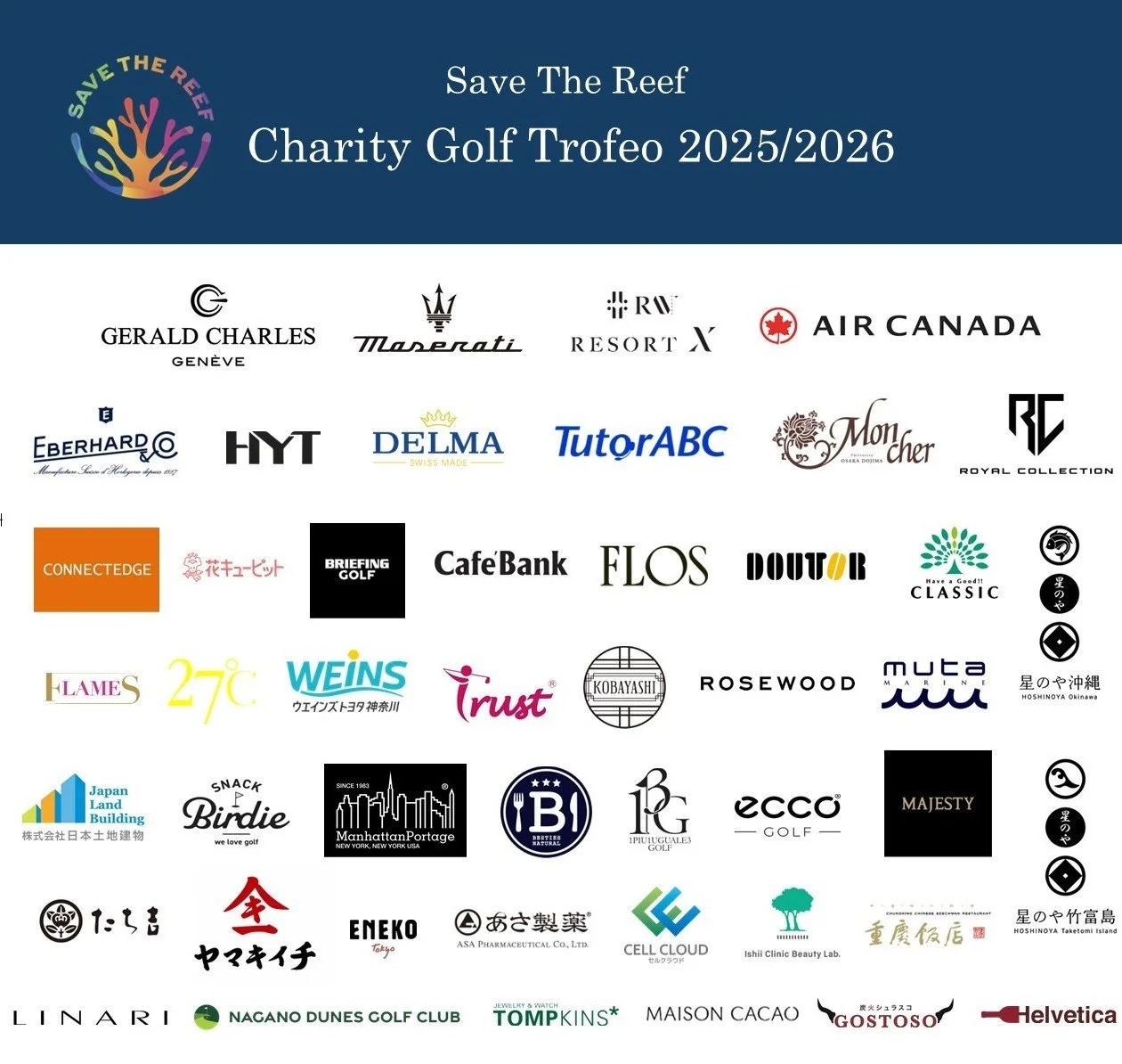 協賛メインスポンサーは主催者であるオフィス麦野取扱のスイス高級時計「ジェラルド・チャールズ」、イタリア高級車の「マセラティ」、リゾートクラブの「RAV RESORT」、「エアカナダ」による日本‐カナダペア往復航空券もホールインワン賞の協賛を賜りました。ほか豪華ニアピンなどなど…豪華な賞品が沢山集まりました。